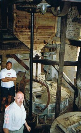 La roue et la machinerie (deux couples de meules, briseur d'avoine) existent encore.