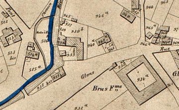 Op de Kadastrale Atlas van P.-C. Popp (ca. 1860) was de "Moulin à eau" op sectie C936a te Glons (art. 1453) in het bezit van Debrassine, Laurent, négociant, Tongres (Tongeren).