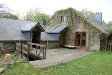 - Natuurstenen gebouw, met aan de watergevel plankbeschot en eternietbedekking