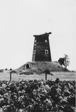 C'est le moulin à vent de Momalle: six niveaux, un diamètre de 7,60 mètres à la base, de 5 mètres au sommet. Construit en 1852, - comme en témoigne le linteau d'une fenêtre ouest -, il a perdu ses ailes depuis longtemps: plus de vrombissement, plus de chuintements ni de grincements des meules de pierre, des axes de fer et des roues dentées. Même lorsque le vent hurle...