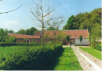 Voormalige langgestrekte hoeve met ordonnantie: woonhuis met anderhalfhuisopstand-stal-schrijnwerkerij-paardenstal; acht traveeën en één bouwlaag, met geprofileerde daklijst, één dakvenster en twee -luiken onder zadeldakjes met vleugel-, schouder- en overhoekse topstukken, restant van het voormalige klooster, in 1895 tot hoeve omgevormd, cf. jaartalankers, doch met oudere kern. Gebruik van fel rode baksteen voor omlijstingen, daklijst, vleugel- en topstukken van dakvenster en -luiken. Eertijds beluikte, getoogde muuropeningen op hardstenen lekdrempels. Grotendeels gedichte r.poort van paardenstal. Ter hoogte van N.W.-hoek van het gebouw, plaats van verdwenen poortgebouw, cf. sporen. Oostelijke zijgevel met uitgezwenkte top, één aangepast rechthoekig venster en oculus in geveltop. Westelijk zijpuntgevel met recente rondbogige muuropening en analoog oculus. Achtergevel met volledig aangepaste muuropeningen. Lagere oostelijke aanbouw in mei 2000 in aanpassing, o.m. afgebroken bedaking en recente vlechtingen, schouderstukken en topstuk van de oostelijke zijpuntgevel; getoogde deur met roedeverdeling in bovenlicht. In het verlengde, plaats van het verdwenen bakhuis, nog zichtbaar op een oude foto van 1890. Interieur van het hoofdgebouw: troggewelven op I-balken.