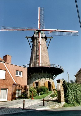 Zo gaat dat. Laatst zat ik op een mooie maar mistige avond, en wel in bijzonder aangenaam gezelschap, te eten in de Muizelmolen. Heel fijntjes en gezellig. Om dat nog even na te trekken (én de smaak van "Zeeduivel in een jasje van gerookte bacon, tomatenpiperade" nog wat na te proeven) kwam ik dagen later toch ook nog ‘ns virtueel in de molen terecht. De Muizelmolen, zo leerde ik, blijkt een houten staakmolen uit 1799 te zijn die in 1817 door een brand vernield werd. Het gaat hier om een korenmolen met twee koppelstenen en een haverpletter. Bij de bouw werd Doornikse kalk en roggemeel gebruikt, en de stenen werden gebakken uit klei afkomstig van de Vrijleghem hofstede. Nadat in het onheilspellende jaar 1965 de molenas brak, werd de molen in verschillende fases gerestaureerd om anno nu opnieuw helemaal maalvaardig genoemd te kunnen worden. Als dit alles geen mooi lesje in cultureel erfgoed genoemd kan worden! Na mijn virtueel bezoek aan de molen raakte ik daarna via onze vriend "het hoehel-zoekmasjien" ook nog in De Lochtienk verzeild. Zo zie je maar, van een menukaart naar een weblog, bij ons is dat maar een erg kleine stap. Van het restaurant naar de moestuin, da's hier bij ons in West-Vlaanderen immers wel vaker de énige en juiste volgorde! Eerst aan tafel! Daarna rest er nog tijd genoeg voor, zoals het hier heet, het krijgen van een slag van de molen! Al mag, met Rijsel hier vlak in de buurt, de Franse vertaling "avoir une araignée au plafond" er natuurlijk ook best zijn!