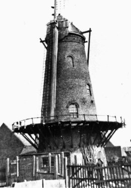 "Hoe vader meulenaar werd? - 'k Zou hier eerst een woordje moeten zeggen over de meulen van de familie Jonckheere in het Meulendorp te Eernegem. Voor zover ik gehoord heb zou meulenaar Jonckheere hier te Eernegem in de Aartrijkestraat in 't jaar 1857 een stenen muelen en meulenhuis gebouwd hebben; in alle geval de twee gebouwen zijn met dezelfde soort stenen gebouwd en ginder boven op de ijzeren "vlagge" - windwijzer - staat het jaar 1857 te lezen.