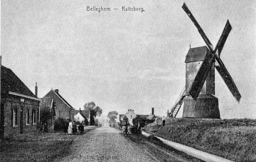 De Katteberg Molen, boven op de Katteberg, links van de baan Kortrijk-Doornijk, scheen te zullen verdwijnen want lange stond ze stille, met en enkele roede geschrankt.