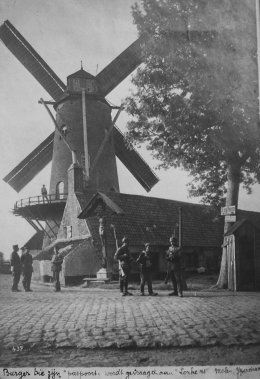 Toen de Duitsers in 1918 het hazenpad kozen moest de molen gedynamiteerd worden. Twee Duitsers graafden een put naast de molen om er dynamiet onder te plaatsen. Toen alles klaar was werd de molenaar aangeraden de omgeving te verlaten, maar die had reeds enkele emmers water klaar gezet. De Duitsers lagen in dekking op 60 meter verder oostwaarts om de ontsteking uit te voeren. Victor Loncke, de molenaar was achter de molen weggegaan, in de westelike zijde en loerde de Duitsers af, tot hij ze zag weggaan om dekking te zoeken. Hij liep terug naar de molen en goot de emmers water in de put waar de dynamiet in stak en koos het hazenpad. Wegens gebrek aan tijd kwamen de Duitsers niet meer terug en bleef de molen staan.