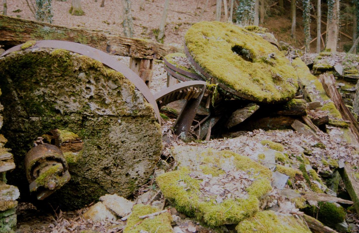 Ooit werd er via een kanaaltje achter een dam met sluisdeur een constante waterstroom gestuurd naar een machtig schoepenrad. Dat rad dreef op zijn beurt weer een stelsel van tandwielen aan. En zo werd uiteindelijk tussen grote molenstenen het graan van de naburige boerderijen gemalen tot meel. Bijna gedurende 1000 jaar!