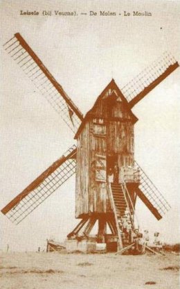Molen: Leisele (Alveringem, W.-Vl.), Stalijzermolen - staakmolen met open voet