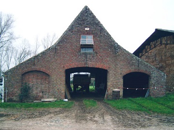 Er resteert voor de middelste toegang van de schuur nog een bakstenen looppad.