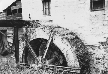 Buitenwerk: ijzeren toevoergoot. Vroeger middenslagrad, begin de 20ste eeuw vervangen door het huidig ijzeren bovenslagrad: plaatijeren bakken geklonken tussen plaatijzeren velg (gesloten bodem); platijzeren spaken met schroefbouten bevestigd op velg en op gietijzeren askop met ribben; ijzeren as.