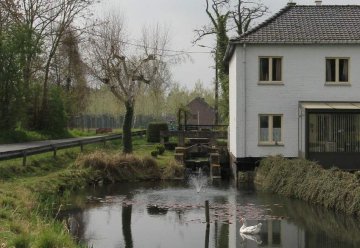 Het houten onderslagrad met metalen schoepen werd vernieuwd na de breuk van de houten wateras in 2002. De eigenlijke Mombeekbedding is verlegd.