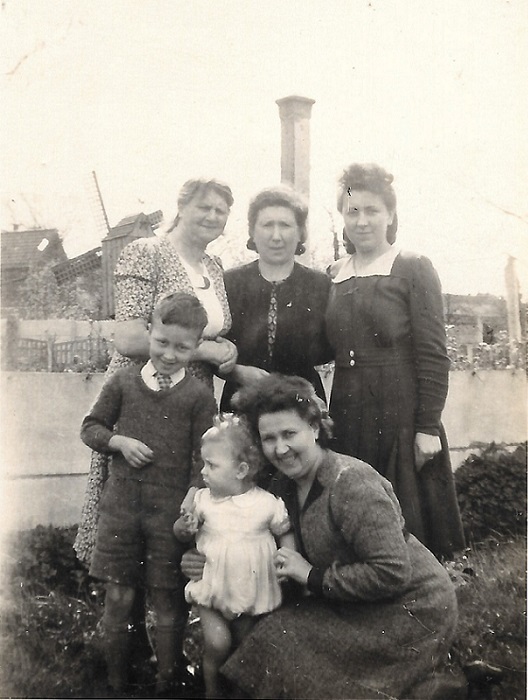 Bij toeval vond ik in een familie-fotoalbum bijgevoegde foto van het gezin van mijn vader (de kleine jongen links op de foto) uit 1945.