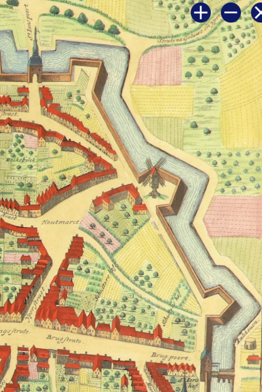 - op een gedeeldelijke plattegrond van Menen, getekend in 1616 door landmeter Louis de Bersaques