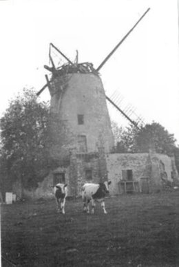 Deze foto komt uit het hoofdstuk over de Brabantse Zandleemstreek in het Guldenboek van den Belgische landbouw uit 1939. Centraal staat de windmolen van Hekelgem, kerndorp van de fusiegemeente Affligem. Het gaat wellicht om de Nieuwe Molen of Molen De Vis op Hoog-Boekhout, op de westflank van de Molenberg te Hekelgem. De huidige molen werd gebouwd in 1827-1828 door Jan-Baptist De Vis uit Meldert. De Nieuwe Molen deed grotendeels dienst als graanmolen, maar tijdelijk, rond 1870 deed hij ook dienst als oliemolen. De molen kon ook ingezet worden voor het malen van haver en boekweit. De verschillende installaties die sinds 1869 in werking waren, staakten hun bedrijvigheid in 1920. Van 1883 tot 1913 werd bij windstilte een stoommachine gebruikt. Tijdens deze periode deed de kracht van de wind een pomp werken die de stoommachine, de stal en de woning van water voorzag. Vanaf 1913 werd de stoommachine niet meer gebruikt omwille van de grote kosten en draaide de molen opnieuw alleen door de kracht van de wind. De stoomketel bleef ter plaatse en voorzag de vergaarbak en de stal van water tot het einde van Tweede Wereldoorlog. In 1928 verving een oliemotor de kracht van de wind. Op zijn beurt werd de oliemotor door een elektrische motor vervangen. Tot op vandaag bleef de molen eigendom van de familie De Vis. De molen is vervallen en heeft een zwaar gehavende molenromp. Sinds 1952 werd hij buiten gebruik genomen, beschermd op 27 september 1943 maar in 1992 werd de bescherming weer opgeheven. Rond 1960 werd er aan restauratie gedacht, er kwam echter niets van in huis. Er rest nu nog de romp waarop de verweerde daklijsten aanwezig zijn. Het molenhuis dat ooit werd bewoond door de heemkundige professor Henri De Vis, bleef bewaard. Links van de molen staat een hoge schoorsteen die wijst op de aanwezigheid van de motor; rechts een schuur. Ook de hoge bomen in de buurt doen vermoeden dat de windvang geen belang meer had. Op de voorgrond lopen vier paarden in een wei, omheind met prikkeldraad. Tegenwoordig is de molen vervallen tot een ruïne.