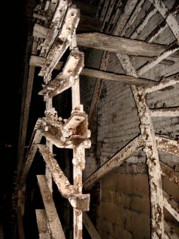 - Metalen middenslagrad met houten schoepen, type Sagebien, diameter 7,80 m, breedte 1,60 m.