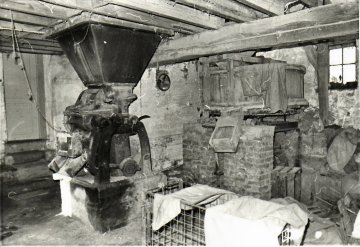 - Gietijzeren aandrijving, twee steenkoppels, haverpletter, graanreiniger, slijpsteen, cirkelzaag, builmolen