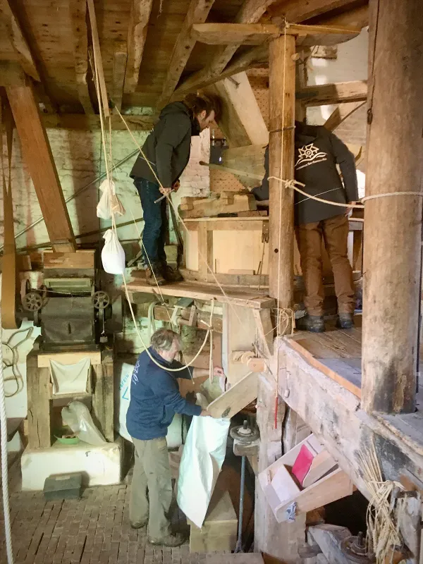 De molen draait van april tot en met oktober, elke tweede en vierde zondag van de maand en van november tot en met maart: elke tweede zondag van de maand voor het publiek. Voor inlichtingen kan men contact opnemen met dienst cultuur en toerisme Dilbeek (d'Arconatistraat 1, 1700 Dilbeek, 02 451 69 34, toerisme @ dilbeek.be. Tot 1 januari 2009 bestond het molenaarsteam uit Wies De Troch, Leo Tielemans, Willy Deschuyter en Robert Staquet. Vanaf 1 januari 2009 tot kort voor zijn overlijden op 17 oktober 2012 te Luttre was Robert Staquet er de enige molenaar. In 2013 zijn Yves Sterckx en Jan Delcour er als vrijwillig molenaar actief.
