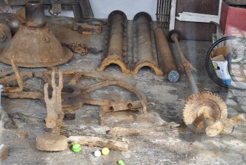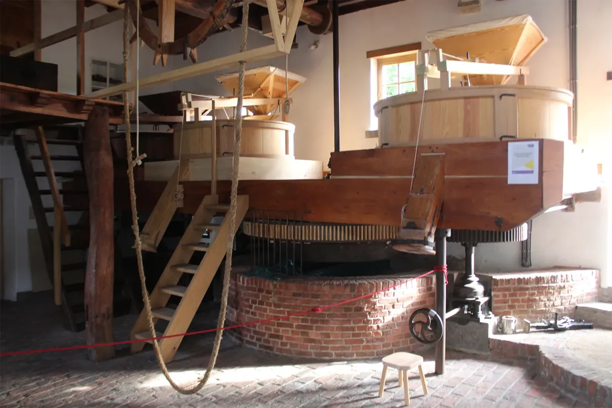 De houten maalinrichting is vrijwel intact bewaard.