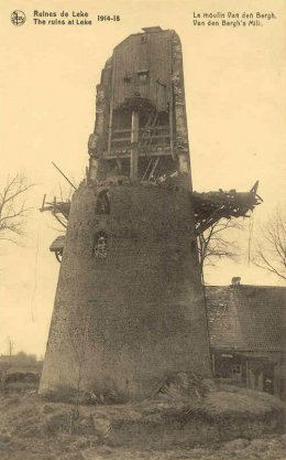 Op 17 oktober 1914, toen de Slag aan de IJzer losgebarsten was, werd bij de terugtrekking van de Belgen, de 25 m hoge molen grotendeels vernietigd met dynamiet om te beletten dat deze door de Duitsers als observatiepost zou gebruikt worden. De kap, wieken en een deel van de romp en gaanderij werden weggeblazen. De molenruïne heeft dan echter toch nog gediend als uitkijkpost voor de Duitsers: ze plaatsten er hun periscopen met sterke lange afstandslenzen. Vanaf de vernielde molen konden de Duitsers het front overzien vanaf de zee tot aan Veurne en Ieper.