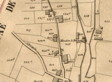 Volgens de Kadastrale Atlas P.-C. Popp (ca. 1860) was de "moulin à farine" op sectie A 415 toen in het bezit van Féront, François et Joseph, meuniers, Petit-Hallet.