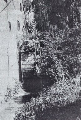 De molen Er is een smal metalen bovenslagrad. De watergoot is neergestort.