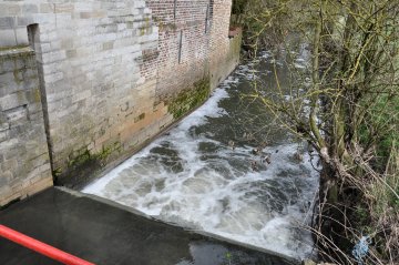 Waterwiel, maalas en sluizen en schuiven verdwenen.