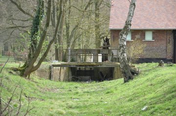 - Gerenoveerd gebouw, vervallen waterrad; waterloop omgelegd