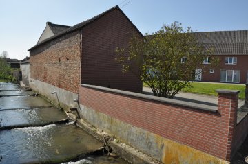 Molen: Hoepertingen (Borgloon, Limb.,), Hammolen - watermolen met (verwijderd) houten onderslagrad