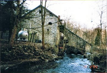 - Natuurstenen gebouw, in de lengterichting van de waterloop