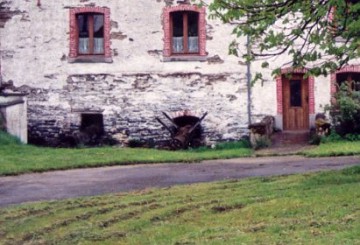 - Vroeger ook zaagmolen. Natuurstenen gewit gebouw, in de lengterichting van de waterloop