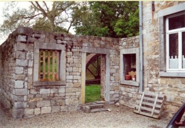Dat rad is nu buiten los opgesteld. Voorheen bevond het zich rechts aan de achterzijde van het gebouw.