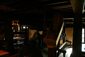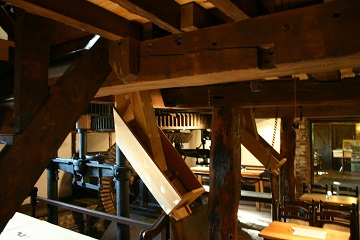 - Vroeger vol-, olie- en bookmolen, gebouw dwars op de waterloop