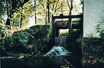 Ayant atteint la heuteur de chute souhaitée, la dérivation forme un angle droit et se pouisuit par un second canal qui rejoint le cours naturel de la rivière dans le "vrai" fond de la vallée. C'est évidemment à l'angle de ces deux canaux que se trouve le moulin.