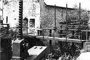 L'énergie fournie par cette scierie mettait en mouvement tout un système de câbles tendus sur des poulies qui s'étirait jusqu'à la carrière et permettait de scier sur place les blocs de marbre. Ce système de fil hélicoïdal permettait donc l'extraction des blocs au coeur même de la carrière.