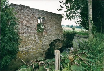 Het waterrad is verdwenen. Van het gebouw blijven slechts puinen over: delen opgaand bakstenen metselwerk van drie wanden van een rechthoekige constructie, resten van oeververstevigingen en de natuurstenen strekdam aan de overzijde van de beek. Getraliede rechthoekige vensteropening met natuurstenen latei op de natuurstenen onderbouw van de watergevel.