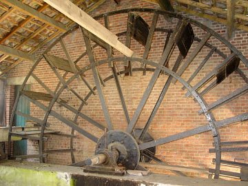 Het metalen onderslagrad met houten schoepen is overdekt opgesteld.