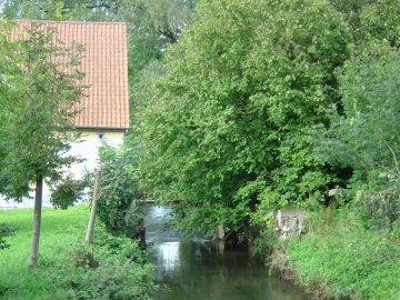 - de keermuren van de aanvoergeul zijn gedeeltelijk in hout; - waterrad (middenslagrad) weggenomen.