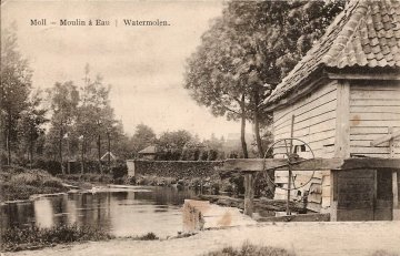 - ca. 1817: "Il y a dans la commune de Mol six moulins, dont cinq à vent et un à eau pour moudre grains. Ces six moulins seront divisés en trois classes à raison de leur valeur et de leur situation. La première classe sera composée des moulins à vent situés dans la S(ecti)on du Marché, de Stokt et d'Agterbosch. Ils seront évalués savoir à un revenu brut de f. 710 et net à f. 480. Dans la seconde classe sera rangé le moulin à eau aussi dans la S(ecti)on du Marché. Il ne peut... de concurrence avec les précédents attendu que pendant certaines époques de l'année il est en inactivité à cause de l'eau qui lui manque. Il recevra pour ces motifs une évaluation inférieure savoir brut de f. 480 et net de f. 320"