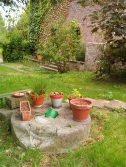 Lors de travaux un peu en amont, le propriétaire actuel a découvert une meule verticale appartenant probablement à un moulin pressoir situé tout là-bas.