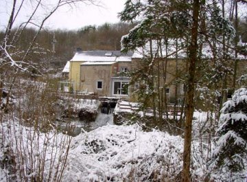 Deze turbinewatermolen is overheen de Hermeton gebouwd. De molen zelf dateert uit 1791. In 1813 werd het minder diepe woonhuis gebouwd. De molen werd in de jaren 1970 stilgelegd. In de jaren 1980 volgde een leegstand en verkrotting. Een nieuwe private eigenaar kocht het domein aan en renoveerde de gebouwen, met o.m. een vernieuwd dak.