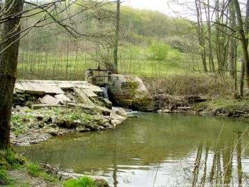 De eerste dam met sluiswerk die een 150 meter stroomopwaarts staat om de voorloop van de molen te voeden is dringend aan herstel toe. Het sluiswerk aan de molen zelf is nog in behoorlijke staat.