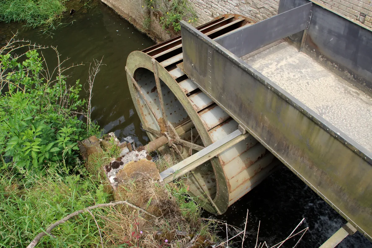 dat na de dood van Paul De Meyer te lang had stilgestaan was grotendeels weggeroest, De bestaande watergoot, die nog in goede staat was, werd teruggeplaatst. Ook het sluiswerk is vernieuwd. Weliswaar dienen de plankjes, die het water stuwen, nog steeds manueel te worden ingebracht.