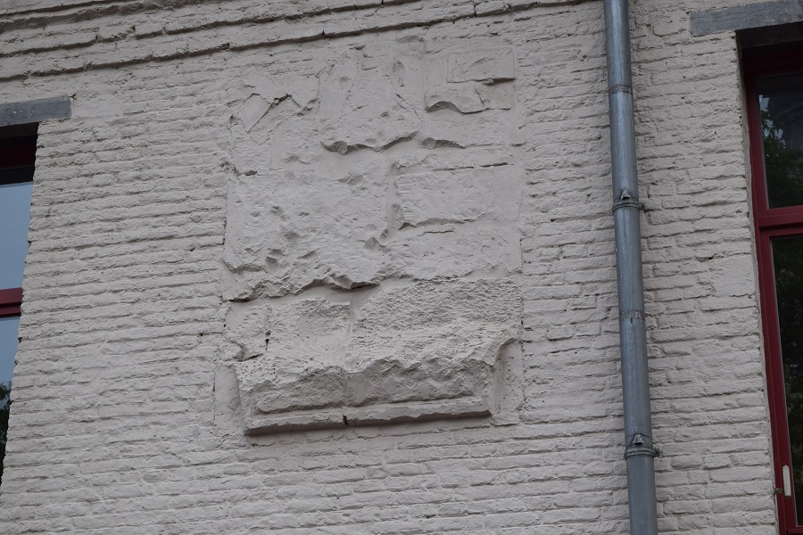 Op de gevel, zijde Kantienberg, zijn twee stenen schilden ingewerkt, maar hun afbeeldingen zijn sterk verweerd geraakt.