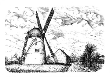 "il y a deux moulins à vent dans la commune d'Opdorp. Savoir celui situé Section A n°174, appartenant à Westerlinck, ce moulin est bâti en bois. Le deuxième est situé Section B n° 686, appartenant à Corneille Van Hoeymissen, il est bâti en briques.
