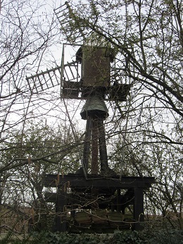 Frans Houssin bouwde het molentje rond 1990 achter zijn woning. Hij was verplicht te werken met een hoge voet en een kleine kast, om zo ondanks de huizenrij voldoende wind te kunnen vangen. Hij bouwde het molentje met het doel er elektriciteit mee op te wekken. Door omstandigheden werd de molen echter nooit afgewerkt. Hij heeft echter wel nog steeds de zeilen. Het molentje zou nog kunnen draaien maar dat gebeurt heel zelden.