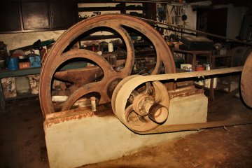 In de machinekamer bevindt zich de ASEA motor met reducerende overbrenging via een riemstelsel dat de gehele lengte van het bijgebouw in beslag neemt; de zware ijzeren riemwielen zijn gemonteerd op gemetste sokkels. Het is een industrieelarcheologisch interessant voorbeeld van snelheidsreductie door middel van een uitgebreid riemenstelsel.