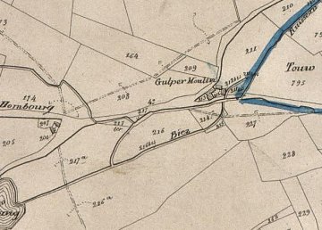 Op de Kadastrale Atlas van P.-C. Popp (ca. 1860) vinden we de "Moulin à farine" op sectie B212bis in het bezit van Nagelmaekers, Gérard-Théodore, épouse Joseph, banquier, Liége.