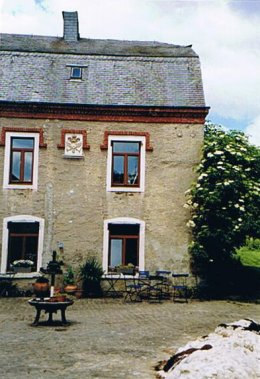 Une premiére extension de ce bâtiment primitif intervient sans doute dans la seconde moitié du 19 siécle par allongement du volume, couvrant ainsi la roue. A cette époque, une premiére grange est construite en retour d'équerre. En 1880, la deuxiéme grange est construite derriére la premiére. L'habitation est actuellement couverte d'un toit à la Mansard. Une frise de briques assez importantes sous gouttiére, sans doute tardive, est inhabituelle dans la région. La façade comprend trois travées de baies sur deux niveaux. Les fenêtres du pignon sont à linteaux bombés avec encadrement en briques et surmontées d'un oculus. Les dépendances sont disposées en retour d'équerre par rapport au logis ; il s'agit de deux bâtiments paralléles accolés. Le premier comprend une porte de grange à linteau droit qu'encadre deux portes d'étables. Le second volume est percé en pignon d'une porte cochére à linteau bombé surmontée d'une fenêtre en plein cintre.