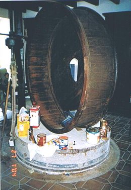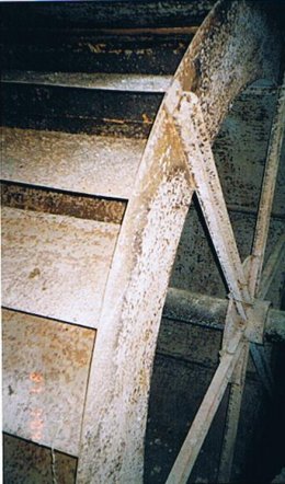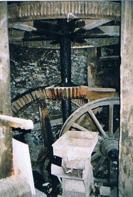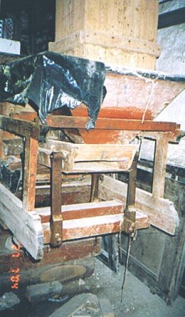 - Gietijzeren drijfwerk nog aanwezig; steenzolder uitgebroken