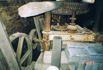 Er waren drie bovenslagraderen: gebouw met één rad en een gebouw met twee naast elkaar geplaatste raderen. Van deze raderen blijven nog enkel de waterassen over. De inrichting van de korenmolen bestaat nog gedeeltelijk: de gietijzeren overbrenging, een steenkoppel,...