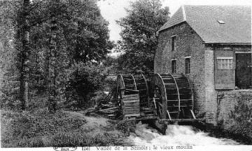 De foto van het witte gebouw is niet de molen maar de voormalige klompenmakerij, het gebouw werd gebruikt door zijn grootouders als kantoo en woning. De zaagmolen zelf stond verderop als apart gebouw op het erf en uitraard aan de Semois.